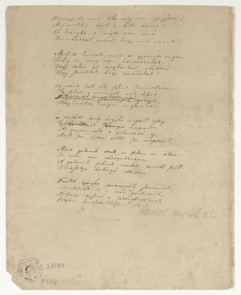A versek ihletője Mednyánszky Berta (1823–1902), Mednyánszky Jánosnak, a gödöllői Grassalkovich-uradalom inspektorának lánya. Petőfi két vagy három találkozás után levélben megkérte Berta kezét, ám a lány levelében elutasította a közeledést. Mednyánszky Berta végül Sándor Lajos fölbirtokos felesége lett. Az Oh mi szép... kezdetű vers kivételével a Mednyánszky Bertához írott Szerelem gyöngyei című ciklus darabjai. A rektón „Petőfi-Társaság 1876” feliratú körbélyegzővel.