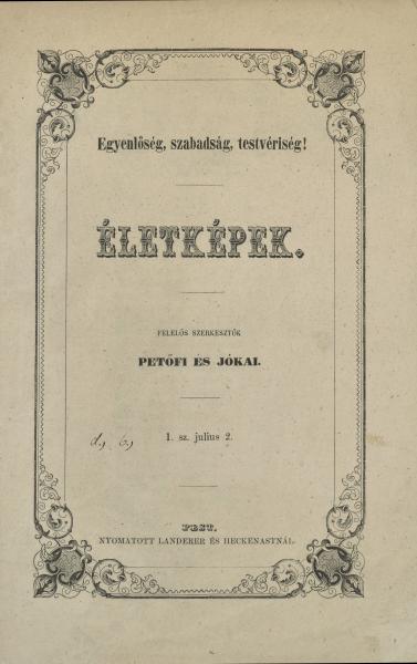 Az 1843-ban alapított, Szépirodalmi divatlap alcímű Életképek első száma 1844. január 3-án jelent meg, s első munkatársai között Petőfi, Jókai és Tompa is szerepelt. Petőfi először A virágnak megtiltani nem lehet, A szerelem, a szerelem, a szerelem sötét verem és Kis furulyám szomorú fűzága című verseit küldte el Frankenburg Adolf alapítószerkesztőnek, ezt követően rendszeresen publikált a lapban. 1845. júliusban itt jelent meg Petőfi Úti jegyzetek című prózai művének néhány darabja folytatásokban. S miután a költő a Pesti Divatlapot elhagyta 1846 júliusában, ősztől kezdve kizárólag az Életképekbe írt.