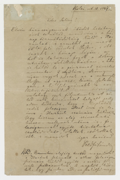 Sass Károllyal (1825–1890), aki később városi pénztáros lett, Petőfi Sopronban ismerkedett meg. Sass Károlyi Lajos gróf erdődi birtokán írnokként tevékenykedett, mind Petőfi, mind Szendrey Júlia bizalmasa lett, ő közvetítette Szendrey Júliának Petőfi leveleit, s ő volt a fiatal pár egyik esküvői tanúja. A levél „várban” kitétele utalás Erdődre.