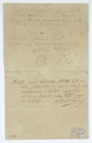 A hazai ipar védelmére indított mozgalmak közepette, erős indulat hatására született verset – szemben például a hasonló témájú Védegyleti dallal – Petőfi minden kötetébe beválogatta. A vers népszerűségére utalhat az is, hogy az első oldala teljesen kifakult, megbarnult, míg a második oldal – az utolsó két, autográf versszakkal és Kolmár József későbbi igazoló soraival – kiválóan olvasható. Az ok nem lehet más, csak az, hogy a kézirat gyakran szerepelt – feltehetően a Petőfi Házban – kiállításon, a hosszas fényhatás és a nem megfelelő klíma megtették romboló hatásukat. Sajnos nem ez az egyedüli ilyen állapotú Petőfi-kézirat. Kolmár József (1820–1917) tanár, költő – aki Petőfit követően a Pesti Divatlap segédszerkesztője lett – a kéziratot Petőfitől kapta, és Kéry Gyula, a Petőfi Társaság titkára útján került a Társaság gyűjteményébe.