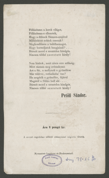 Ez Petőfi első, önálló nyomtatásban megjelent műfordítása.