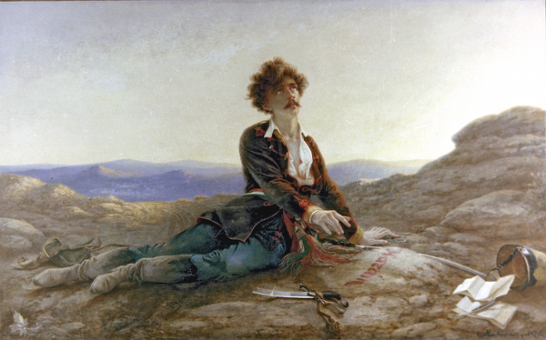 Petőfi Sándor aléltan, égre emelt tekintettel, mellén vérző sebbel csatamezőn pihen, mellette törött kard, jobbját a föld felett tartja, s a porban ott a vérével írott szó: HAZÁM. Mindannyiunk előtt ismert Madarász Viktor fentiekben leírt olajképe, amely a magyar heroizáló romantikus történelmi festészet egyik jellegzetes darabja, kevesen tudják azonban, hogy a jórészt olajnyomatairól képzeletünkben élő kép a Petőfi Irodalmi Múzeum Művészeti Tárában található. Az 1875-ben készült nagyméretű, reprezentatív festmény a művész családjának letétjeként került 1926-ban a Petőfi Társasághoz, a Petőfi Házban elhelyezett gyűjteménybe, majd annak jogutódjához, a Petőfi Irodalmi Múzeumhoz.