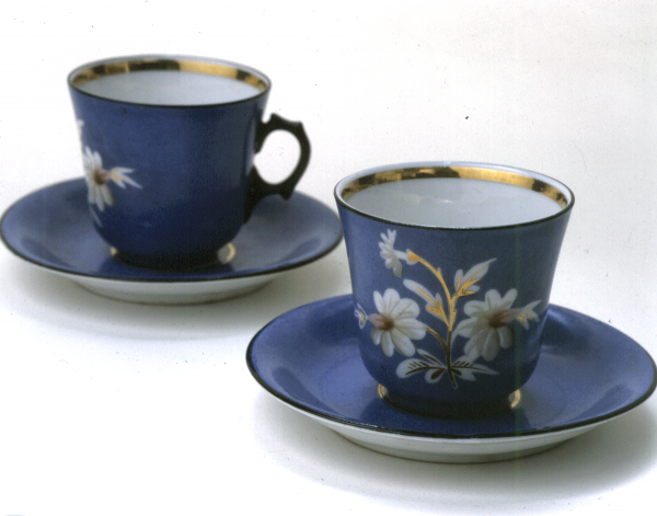 A Petőfi Társaság gyűjteményéből került a múzeumba. „Özv. Csiky Kálmánné úrnő adományai: [...] Arany János ajándékából 2 csésze és tányérok s egy kis gipszalak." (A Petőfi Társaság egyes relikviáival kapcsolatos levelek, hitelesítő nyilatkozatok, feljegyzések, Budapest, 1909. február 16. - Budapest, 1938. október 20., PIM Kézirattár, V. 4559/357/10.) Nincs arra vonatkozó adatunk, hogy a kávéscsészék mikor kerültek Ercsey Julianna és Arany János háztartásába. Az Arany házaspár mindenesetre már Szalontán kávézott. Debreczeni István nagynénje, Debreczeni Julianna, aki bejáratos volt Aranyékhoz (ágyneműre, ingre, szoknyára való csipkét kötött Aranynénak), életmódjuk fokmérőjeként említette a kávézást: „Jól éltek, kávéztak. Cselédet is tartottak." Debreczeni István szerint: „Kávéztak. Ez volt az akkori tanult, úgynevezett nadrágos vagy úriemberek életmódjának fokmérője, amit az egyszerű ember észrevett, kissé megcsudált. A kávézás magasabb életszínvonalat jelentett, azért tűnt fel a kézimunkázó kisleánynak is, és ezért jellemezte ezzel Aranyék életmódját hosszú évtizedek után is. A kávézás akkor meglehetősen új és ritka jelenség volt, legalább is vidéken.” (Debreczeni István, Arany János hétköznapjai, Bp., Gondolat, 1968,104-105.) Petőfi Arany Jánosról először a Toldi megjelenésekor, 1847. február 4-én hallott, s azonmód felajánlotta barátságát levélben és versben. Később több ízben, családostul is meglátogatta Nagyszalontán, ajándékot vitt és kapott, e meleg baráti kapcsolat a költő életének végéig tartott. „[...] most kénytelen vagyok [...] téged kedves Sandrim, és ’királynéd’ kezecskéit csak in idea csókolni, ámbár megvallom, hogy ez utóbbit bajosan tudnám in natura véghez vinni baklövés nélkül, mert életemben nagyon kevés praxisom volt a kéz csókolásban.” (Arany János levele Petőfinek, Szalonta, 1847. szept. 7.)