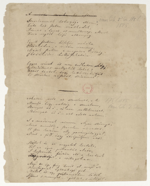 A kézirat nagy, negyedrét alakú, levélszerűen hajtogatott lap. Egyik oldalának nagyobb részét az Ezernyolcszáznegyvennyolc, te csillag című, Csengery Antalnak (1822–1880, az MTA másodelnöke, országgyűlési képviselő), a Pesti Hírlap szerkesztőjének közlésre felajánlott vers foglalja el – a kísérőszöveg a vers alatt olvasható.